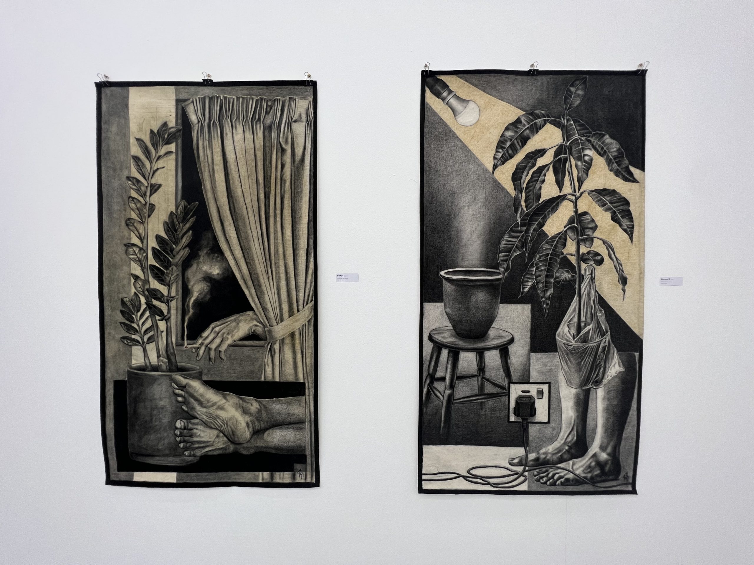 In between, viewers can ponder on the nurturing yet claustrophobic pieces like Rehat (Rest), Beri Perhatian (Self-Care), Dalam Pasu (In the Pot), Lampu (Light), and Mi Segera (Instant Noodles), all curated in a zigzag manner to form a flow from stifled pot to bare, exposed roots—wild, free and finally back to nature.