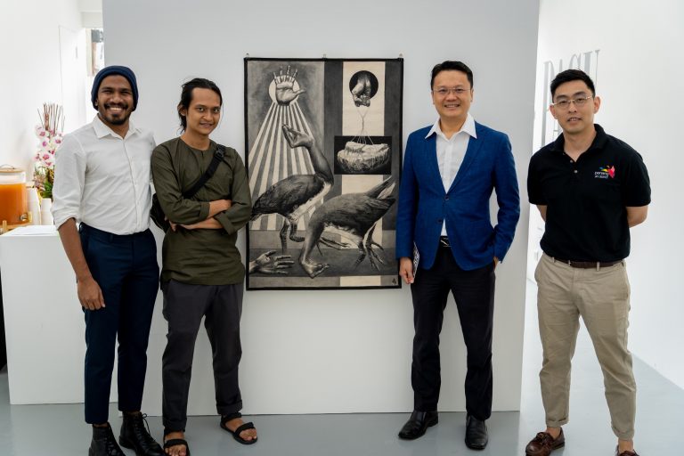Using the pot as a symbol for space, Aqim worked with his mentor, fellow artist Syahbandi Samat whose art is also of the monochrome surrealist genre, to further hone and develop PASU’s concept. Explaining that he is his own hand and foot model, Aqim starts out with basic sketches before expanding them onto a bigger scale.