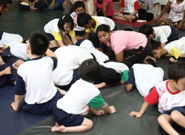 Using drama and movement for gross motor functions with children with cerebral palsy. Photo courtesy of Dr. Mumtaz Begum.