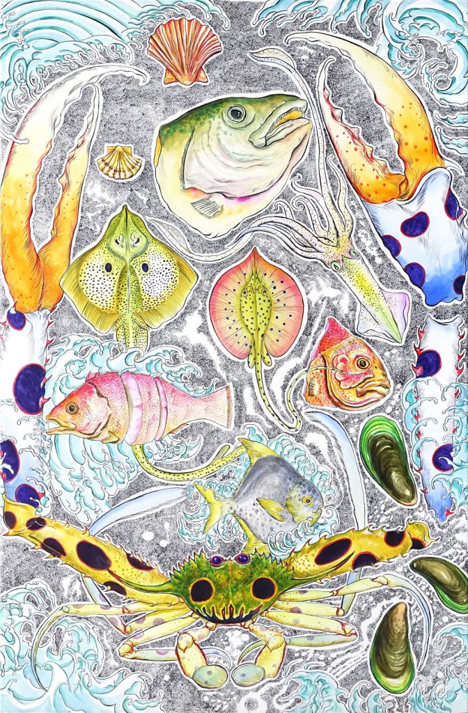 The results can be seen in his recent solo exhibitions as new imagery and settings began to emerge alongside Hasanul’s usual marine life inspirations.