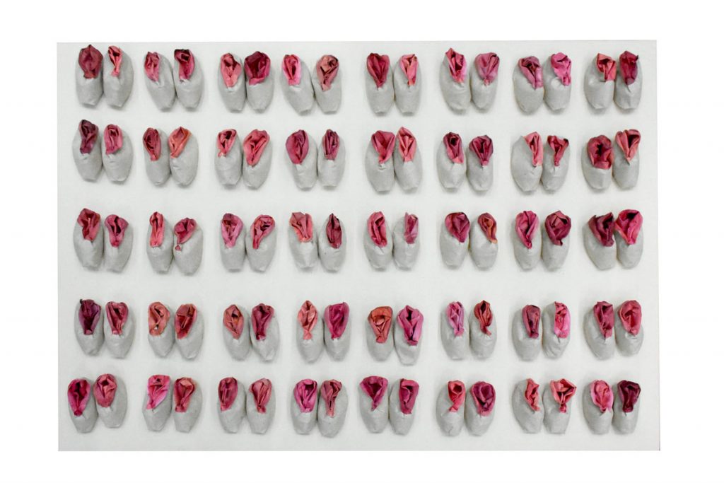 In China’s history, women with small foot was seen as beauty and foot binding existed purely to please men. Big foot in the past and the colour of women’s vagina now are both discriminated. So this “Foot Binding” was set as an aesthetic standard for women living under patriarchy traditions. It reflects a culture that neglects the health of women which goes against nature behaviour. My work blends in the colour of women’s vagina as a metaphor of the modern society, though with the practice of equal rights, women’s standard of beauty are still set under the pressure of the man’s desirability with the pressure of society and traditions, the unrest of women’s status are real.